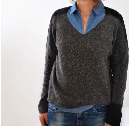 Начните вязать спинку контрастным цветом и формируйте горловину спинки короткими рядами. Продолжайте вязать спинку дополнительными короткими рядами в изнаночном направлении, пока не будет достигнута длина проймы спинки. Основным цветом подхватите петли от края CO для передней части и симметрично провяжите обе передние части, пока не будет достигнута глубина V-образного выреза. Соедините лицевую сторону и провязывайте лицевую сторону до тех пор, пока не будет достигнута длина передней проймы, затем соедините лицевую и изнаночную стороны и провязывайте туловище по кругу до нижней резинки. Поднимите петли для рукавов и провязывайте рукава по кругу.